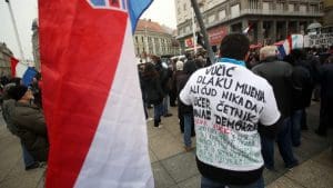 One group of war veterans was seen spreading a massive banner reading: “Vucic, we want an apology!” Meeting with his Croatian counterpart, Vucic later reportedly said that he had noticed the protests but that they did not bother him.